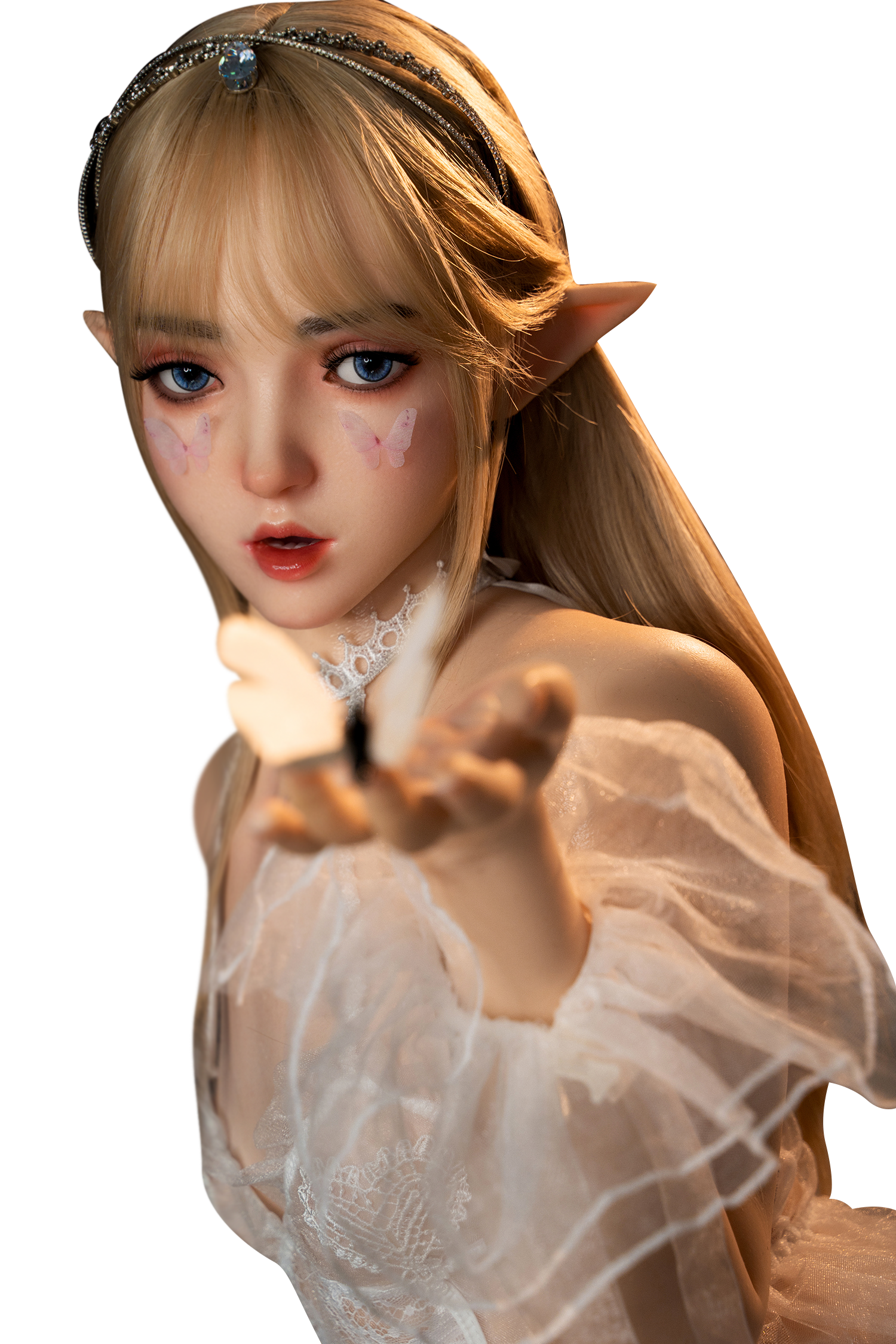Please note that the clothing, accessories, piercings, and special make-up shown in the pictures are not included in the delivery of the item.